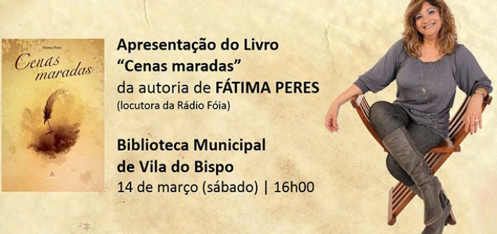 No próximo dia 14 de março, pelas 16h00, será apresentado na Biblioteca Municipal de Vila do Bispo o livro “Cenas Maradas”, da autoria de Fátima Peres. Trata-se da primeira obra literária da autora e...